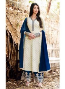 The Suit is a long top or tunic, Which Reaches OFTEN’s up to the knees, but length can vary According to the latest fashion trends. There are different kinds of salwar suits available in the market like Anarkali, Patiala, palazzo, Churidar , gowns, short jacket and many others hurt Differ in the cut of the kameez or the making of the salwar. We have options to choose the style of the neck, the length of the kameez, the style of the sleeves, and many other things the print Which leads to an impressive look to outfit According to the occasion. Each different style in salwar kameez involves a different grace, charm and exquisite. Suits are flouting to the market with the peculiarity in embroideries, pearls, gems, laces and motifs found in different regions, being stitched in fabrics.