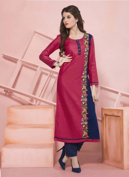 Kurti bottom made with different fabrics Including cotton, silk, jacquard, Chiffon, Net, Khadi, VELVET and many more. Kurti is Capable to sustain the fashion statement as in all seasons in the winter with woolen Kurtis and in summer cotton kurtis . In the market, we can see a vast variety of prints, border designs, embroidery, stone works, zari work, patchwork, Pleats and many more. There is a wide range available in stylish of Kurtis like straight-fit, length, frock, multicolor and A-line styles are hurt wardrobe essentials for every woman. Curtis can set up Team with jeans, Salwar, Palazzo, Jeggings, leggings and Churidar etc.